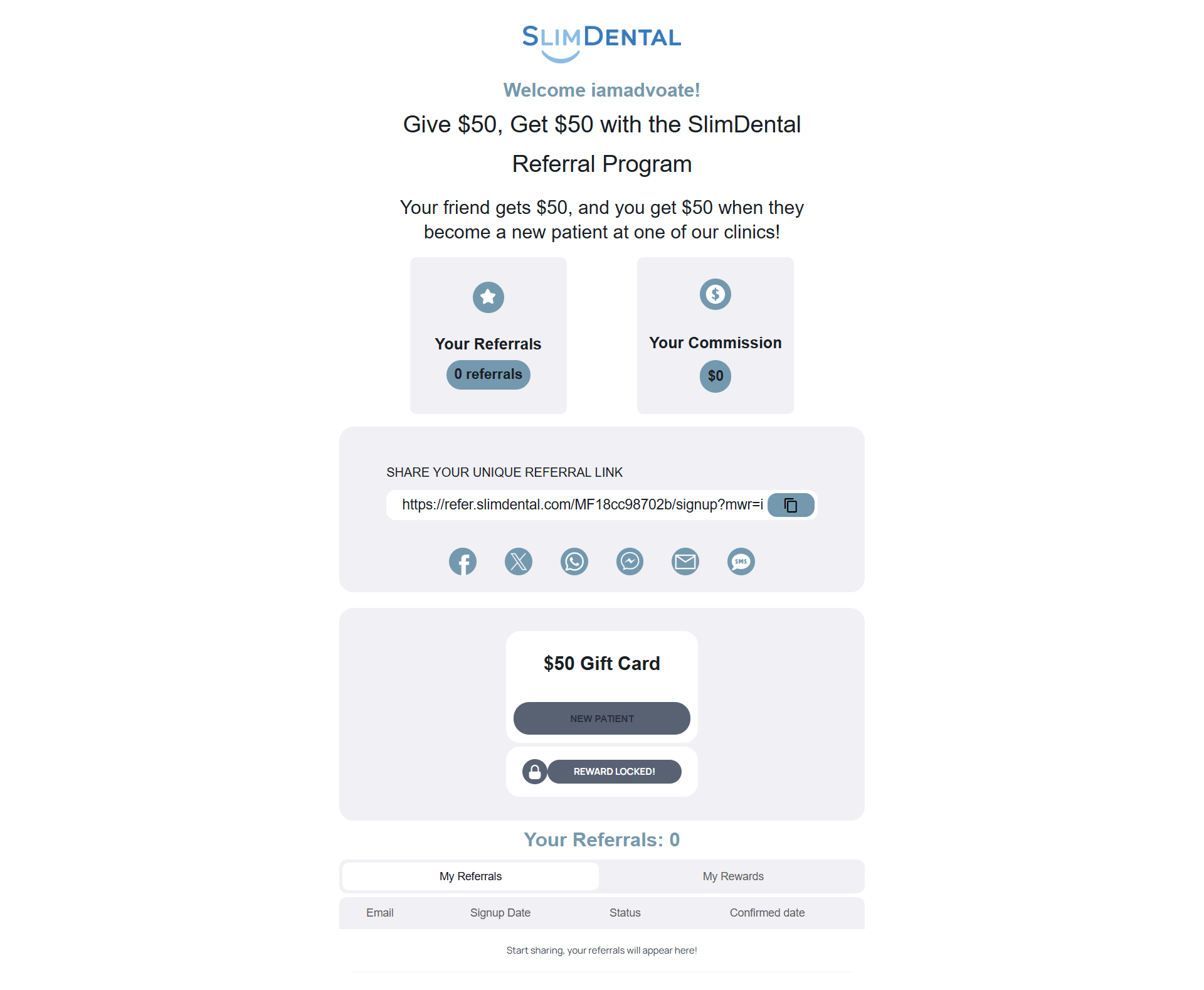 - New Advocates are born with every patient. Each person who joins SlimDental is immediately given the chance to share their own referral link and earn rewards.