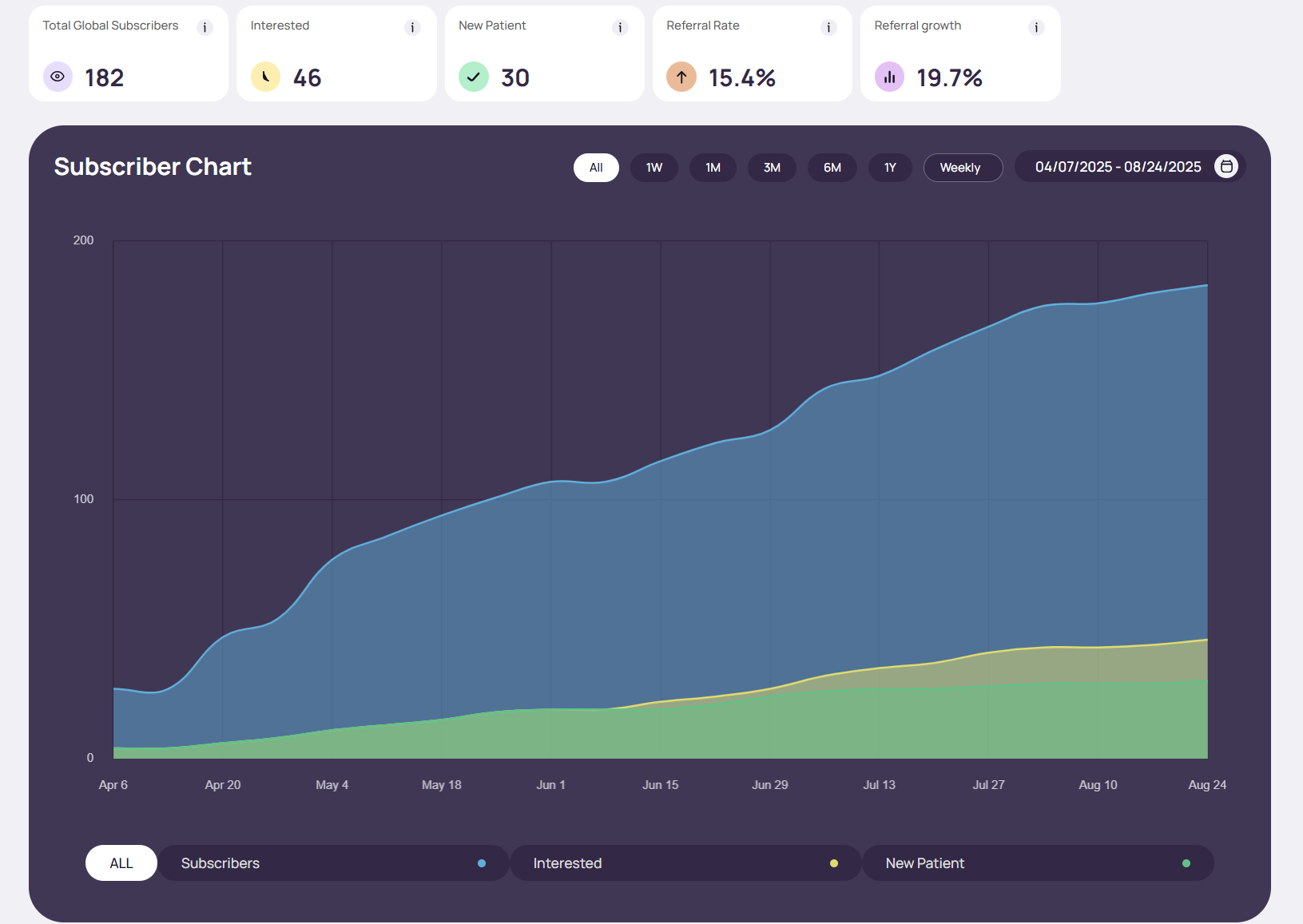 The results speak for themselves: 182 subscribers, 46 referrals, and 30 new patients in only four months. By aligning meaningful rewards with an easy referral journey, SlimDental has built a scalable system that not only grows their patient base but also strengthens trust and loyalty within their community.